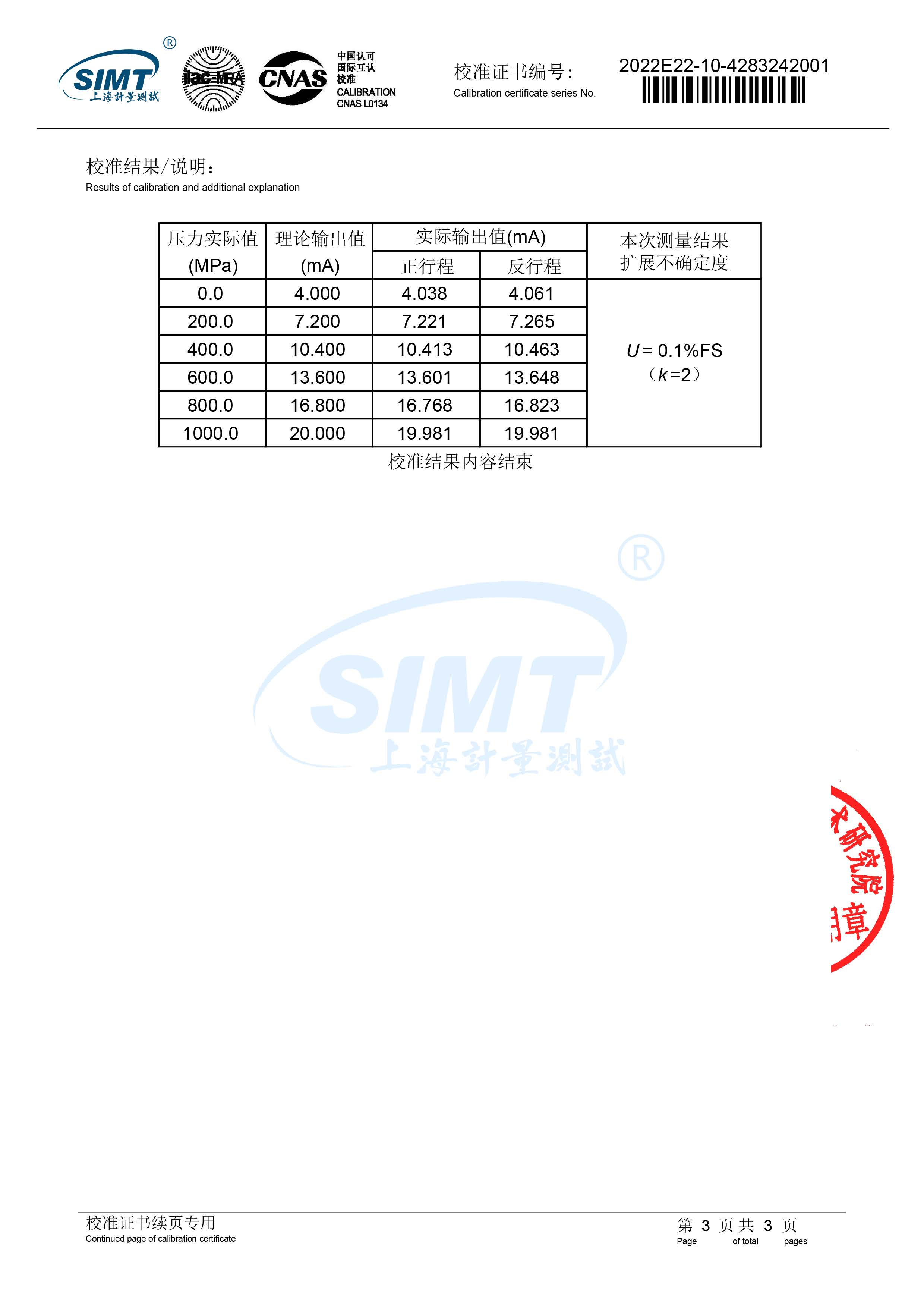 超高壓1000MPa壓力傳感器華東國家計量院檢測通過0.5%FS